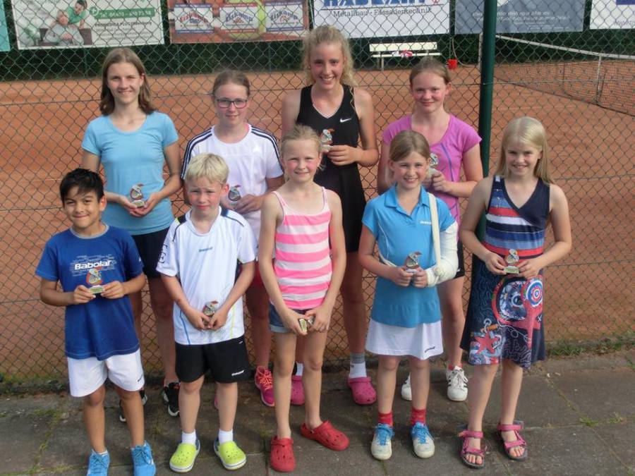 Bei heißen Temperaturen kämpfte der TCE Nachwuch um Titel und Pokale. Gleich zu Beginn der Meisterschaften wurde es voll auf der Tennisanlage. Die jüngsten Teilnehmer starteten ins Turnier und hatten Eltern, Omas und Opas im Schlepptau, so dass ein buntes Treiben auf der Tennisanlage herrschte. Die Jungs und Mädchen des Jahrganges 2007 und Jünger spielten in vier verschiedenen Gruppen. Bei den Kleinsten, dem Jahrgang 2010, siegte Anna Haskamp vor Eric Hense und Lilly Gröber. Bei den 2009ern siegte Hannes Gerdes Röben vor Alissa Hörster und Jakob Rolfes.